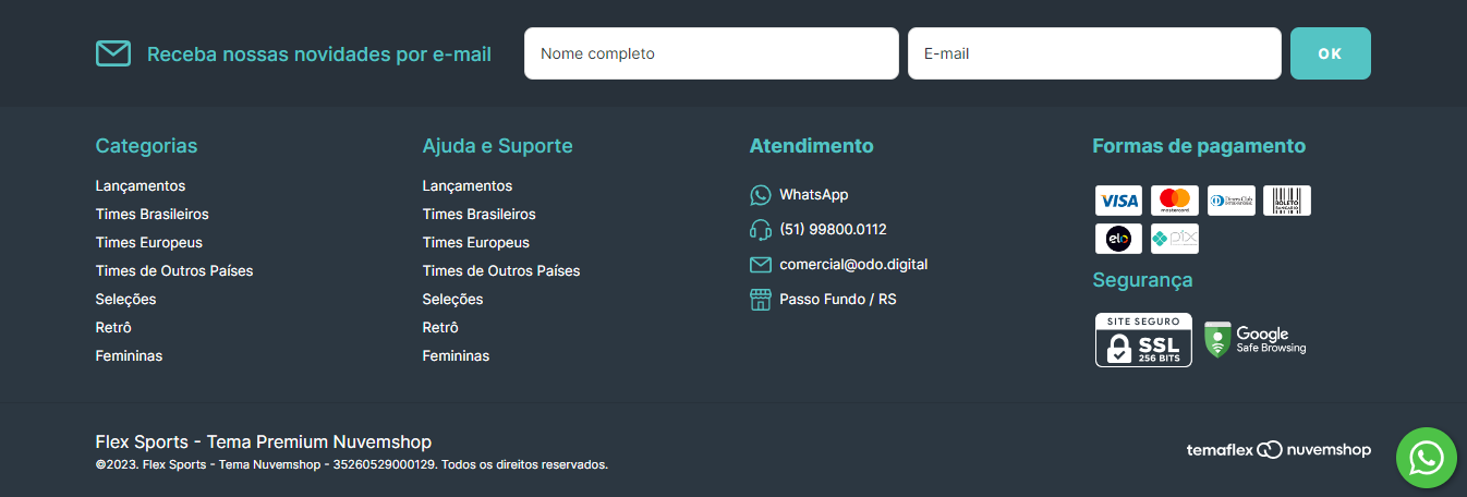 A seleção de **layout do rodapé** vai definir a organização dos elementos no topo da sua loja.&#x20;