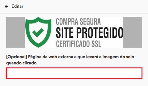 Marque a opção ''Exibir selo do Google Safe Browsing'' para que o selo de segurança seja habilitado ao rodapé.